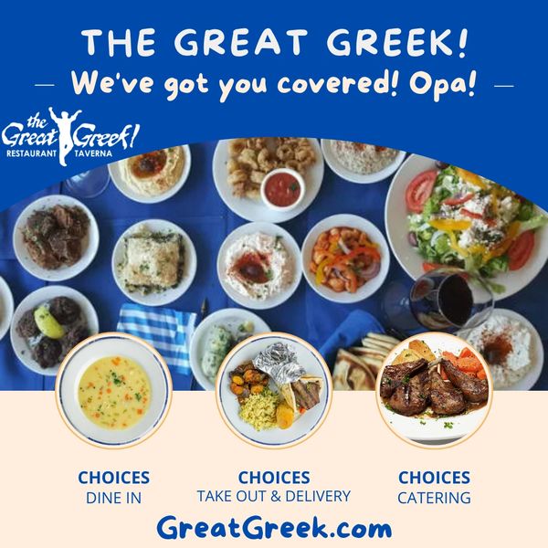 RSVP for large parties and if you're having an event of your own, bring The Great Greek to you with party-size catering orders! Opa!